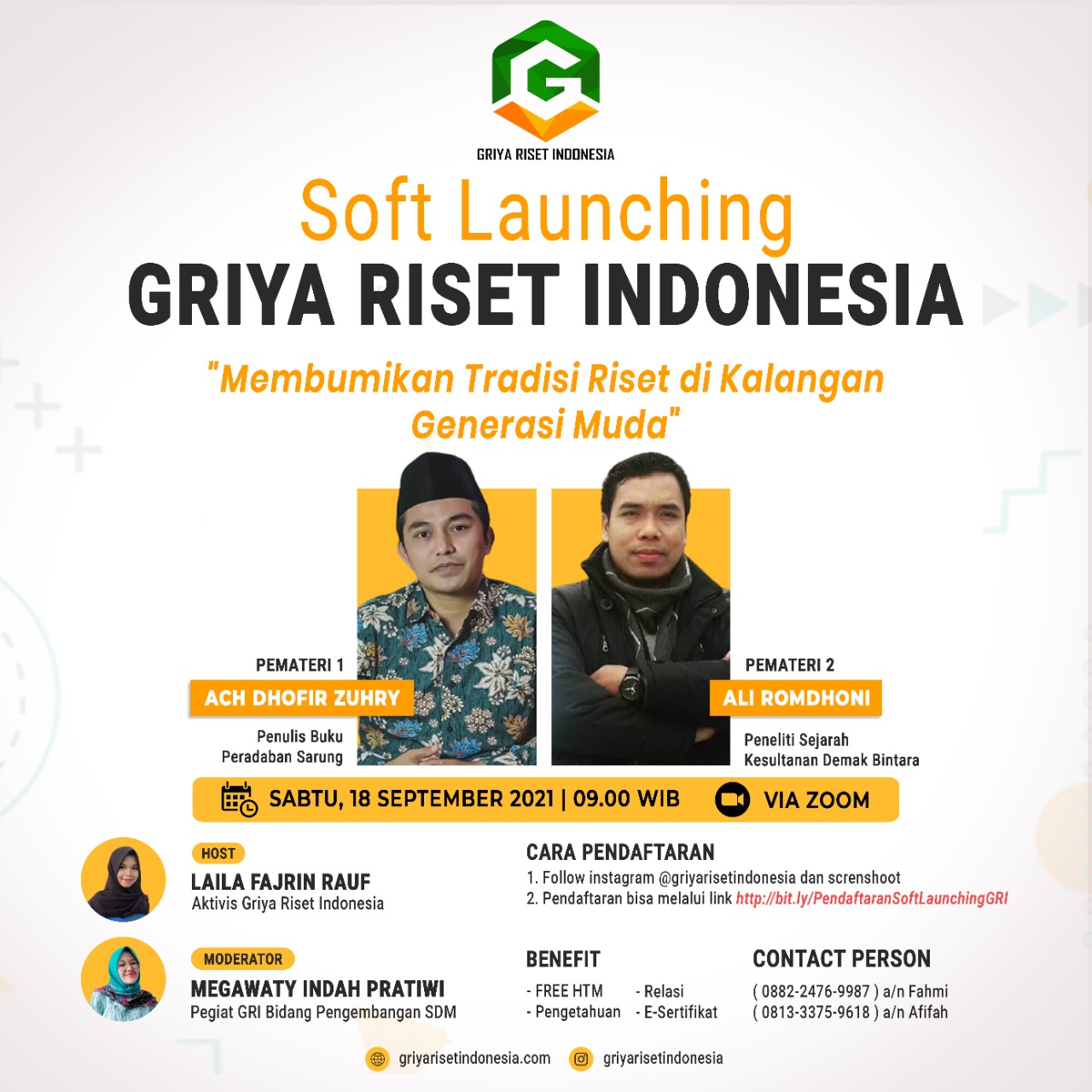 Semarang – Griya Riset Indonesia (GRI) siap menggelar soft launching dengan tema “Membumikan Tradisi Riset di Kalangan Generasi Muda”, Sabtu (18/09/21) mendatang. Soft launching yang disemarakkan dengan webinar ini bertujuan untuk mendorong potensi dan minat meneliti masyarakat Indonesia, khususnya generasi muda. Kegiatan yang akan digelar secara virtual mulai pukul 09.00 WIB lewat Zoom Meeting tersebut […]