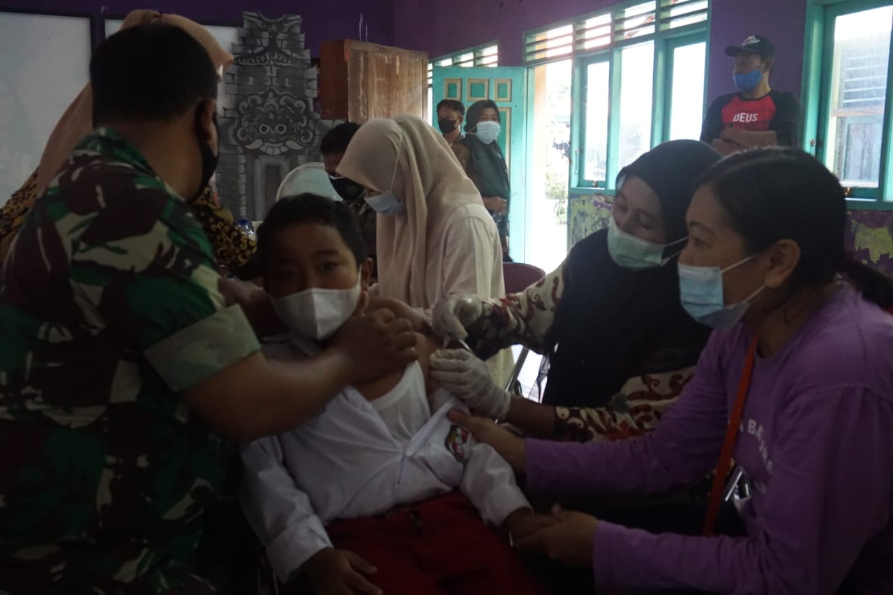 “Tadi ada beberapa anak yang takut. Tapi setelah kita bujuk dan dampingi, mereka akhirnya mau ikut suntik vaksin,” imbuh Kapten Sukartiyo.