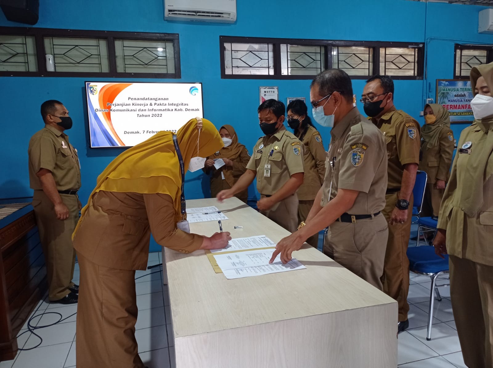 Demak – Sebanyak 25 Aparatur Sipil Negara (ASN) di lingkungan Dinas Komunikasi dan Informatika Kabupaten Demak yang terdiri dari pejabat fungsional dan pejabat administrasi Menandatangani Pakta Integritas dan Perjanjian Kinerja Tahun 2022.