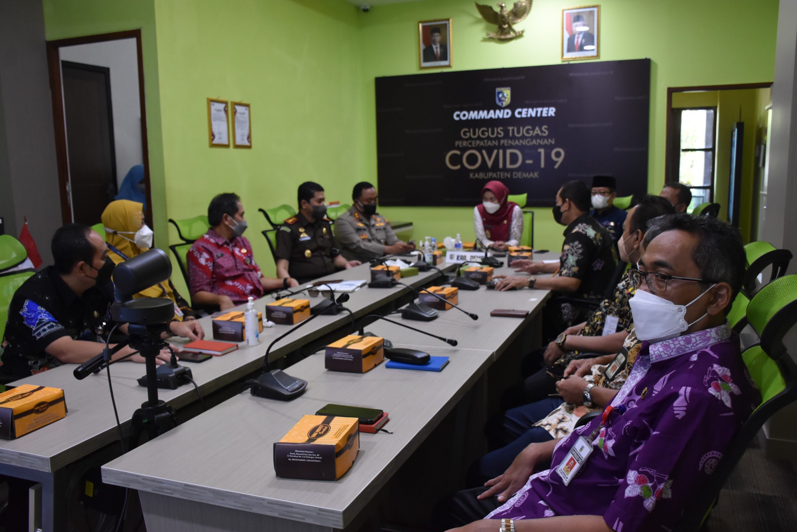 Demak – Pemerintah Kabupaten Demak kembali aktifkan Pemberlakuan Pembatasan Kegiatan Masyarakat (PPKM) berbasis mikro. Hal ini guna mengantisipasi adanya kasus Omicron dan mempertahankan Demak pada level 1. Untuk itu Pemkab Demak melalui Satgas Covid-19 menggelar rakor melalui Vidcon Antisipasi Lonjakan Kasus Covid-19 Varian Omicron di Kabupaten Demak, Rabu (09/2/22) di Ruang Percepatan Covid-19 Command Center yang dihadiri Bupati Eisti’anah, Wakil Bupati Ali Makhsun, Forkopimda Demak.