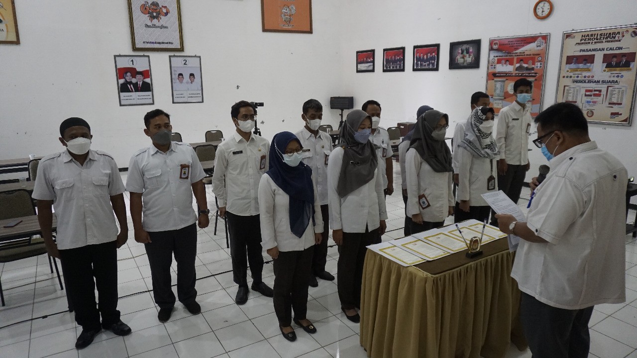 Demak – Sebagai salah satu implementasi pelaksanaan reformasi birokrasi yang dibangun KPU Kabupaten Demak, Pegawai Komisi Pemilihan Umum (KPU) Kabupaten Demak yang terdiri dari Sekretaris, Kasubbag, Pejabat Fungsional, Staf PNS dan Pegawai PPNPN  melaksanakan Penandatangan Pakta Integritas, Senin (14/02/22) di Aula KPU Kabupaten Demak. Dalam acara tersebut disaksikan Ketua KPU Kabupaten Demak Bambang Setiawan serta jajarannya Komisioner KPU.