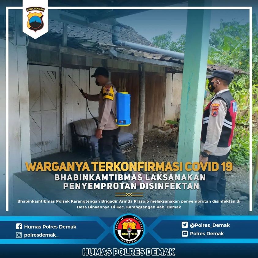 Penyemprotan yang dilakukan Bhabinkamtibmas Polsek Karangtengah Brigadir Arinda Prasojo tersebut bertujuan untuk mencegah penyebaran Covid-19. Mengingat jumlah suspek Covid-19 di Kabupaten Demak setiap harinya semakin meningkat.