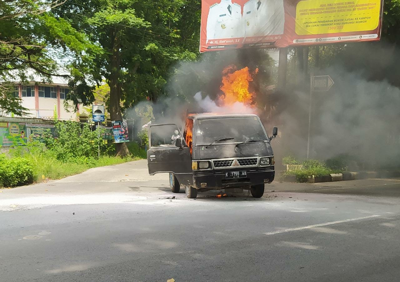 Demak – Diduga terjadi korsleting (arus pendek) satu unit mobil pick up terbakar di Jalan Sultan Hadi Wijaya, tepatnya di depan Dinas Komunikasi dan Informatika Kabupaten Demak, Selasa (22/02/22). Warga yang melihat kejadian tersebut turut membantu memadamkan api dengan menggunakan dua apar (alat pemadam kebakaran) milik Dinas Kominfo dan satu apar milik UPTD pengairan. Namun upaya tersebut gagal dan api masih terus menyala.