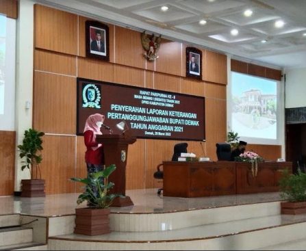 Demak – Bupati Demak Eisti’anah menghadiri Rapat paripurna ke-8 masa sidang kesatu tahun 2022 dengan agenda penyerahan laporan keterangan pertanggung jawaban (LKPJ) Bupati Demak tahun anggaran 2021, Senin (28/03/22). Rapat dibuka Ketua DPRD Demak Fahrudin Bisri Slamet (FBS), dan diikuti sebanyak 28 anggota dewan. Ketua DPRD Demak Fahrudin Bisri Slamet (FBS) menjelaskan, berdasarkan peraturan pemerintah […]
