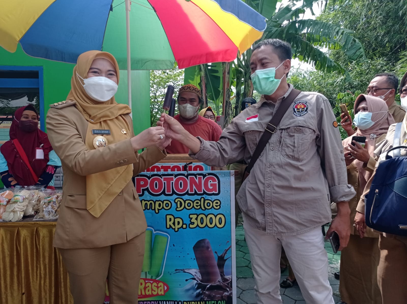 Bupati membeli dua batang es namun diserahkan kepada dua pengunjung lain.