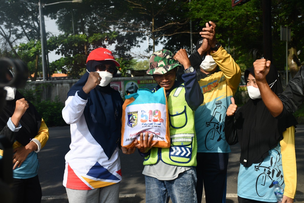 Lebih lanjut, Endah menjelaskan bahwa paket sembako di bagikan kepada warga yang membutuhkan di sekitar rute gowes.