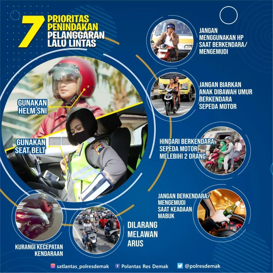 “Ada tujuh prioritas penindakan pelanggaran lalu lintas seperti penggendara menggunakan ponsel saat berkendara, pengemudi atau pengendara di bawah umur, kemudian sepeda motor berboncengan lebih dari satu orang, sepeda motor tidak menggunakan helm SNI dan mobil tidak menggunakan safety belt.” Katanya
