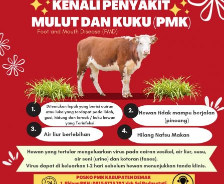 Ciri-ciri penyakit PMK : 1. Ditemukan lepuh yang berisi cairan atau luka yang terdapat pada lidah, gusi, hidung dan tercak atau kuku hewan yang terinfeksi. 2. Hewan tidak mampu berjalan (pincang) 3. Air liur berlebih 4. Hilang nafsu makan Cara pencegahan dan Pengendalian PMK yakni : 1. Tidak membeli ternak di wilayah tertular PMK, 2. […]