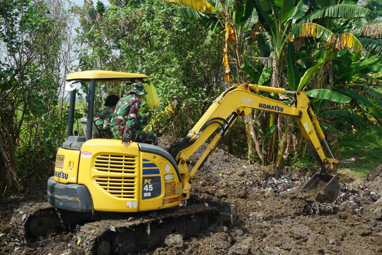 Dengan demikian Kodim 0716/ Demak menurunkan alat berat Exavator untuk membantu meringankan pekerjaan.
