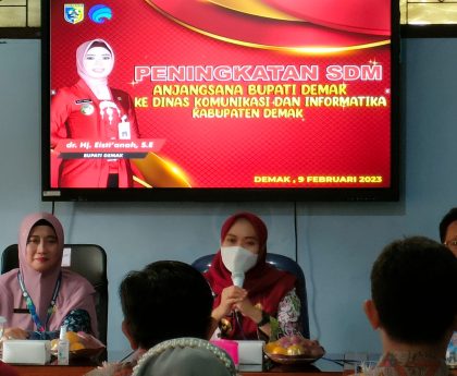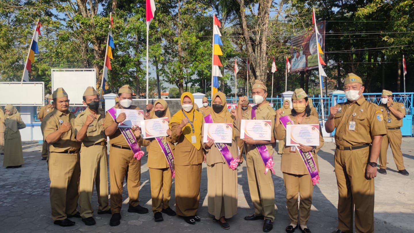 Demak – Lima pegawai Dinkominfo Demak di nobatkan sebagai Role Model budaya kerja tahun 2022. Sebelumnya telah dilakukan voting untuk menentukan Role model pada pekan lalu. Penobatan ke lima role model terpilih ditandai pengalungan slempang dan pemberian piagam penghargaan oleh kepala dinas Kominfo Endah Cahya Rini di halaman kantor Dinkominfo saat apel pagi, Senin (1/8/22).