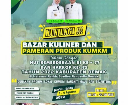 Demak – Bertempat di Halaman Parkir Stadion Pancasila Demak, Dinas Perdagangan, Koperasi dan Usaha Kecil Menengah (Dindagkop UKM) Kabupaten Demak akan menggelar Pasar Kuliner dan Pameran Produk, Koperasi Usaha Mikro, Kecil dan Menengah (KUMKM). Kegiatan yang rencananya akan di gelar selama dua hari dari tanggal 5 hingga 6 Agustus 2022, juga akan menampilkan berbagai macam […]