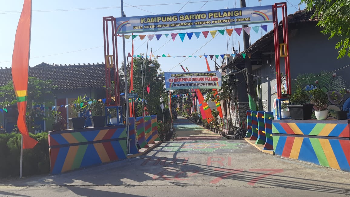 Disebut kampung “Sarwo Pelangi” selain menyambut HUT Kemerdekaan RI ke 77 juga sekaligus mengikuti Lomba Kampung Juara (LKJ) yang diselenggarakan Dinas Perumahan dan Kawasan Permukiman (Dinperkim) Kabupaten Demak.