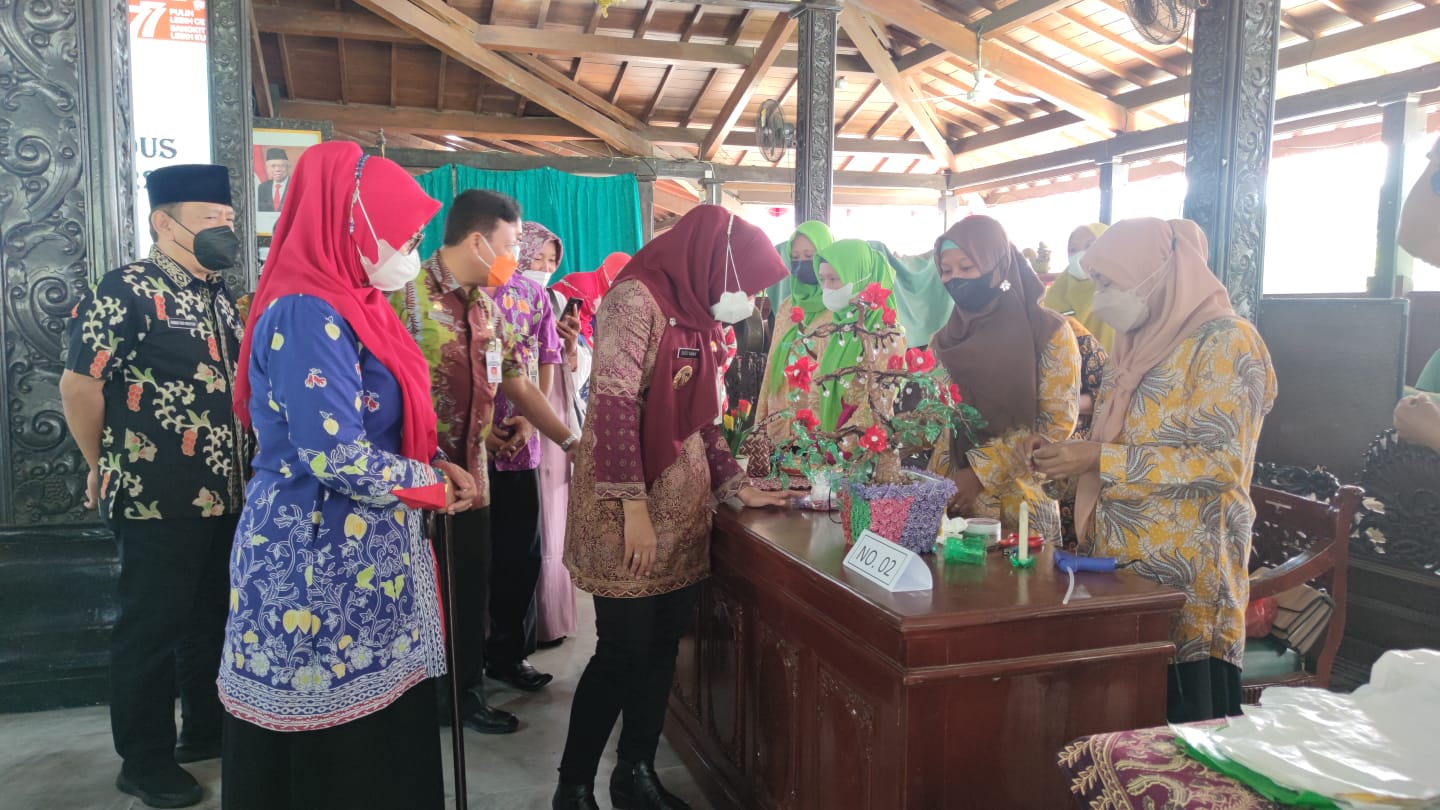Demak – Sambut HUT RI ke 77 tahun, Dinas Lingkungan Hidup menggandeng Tim Penggerak Pemberdayaan dan Kesejahteraan Keluarga (TP PKK) menyelenggarakan lomba Kreasi dan Inovasi (Krenova) tahun 2022 di pendopo Satya Bhakti Praja, Kamis, (11/8/22). peserta adalah dua Desa Binaan PKK tahun 2022 dan masyarakat umum seperti bank sampah, pegiat lingkungan, kelompok swadaya masyarakat (KSM), sekolah Adiwiyata dan lainnya, masing – masing peserta membawa produk setengah jadi dan tahap penyelesaian akhir produk di laksanakan di lokasi.