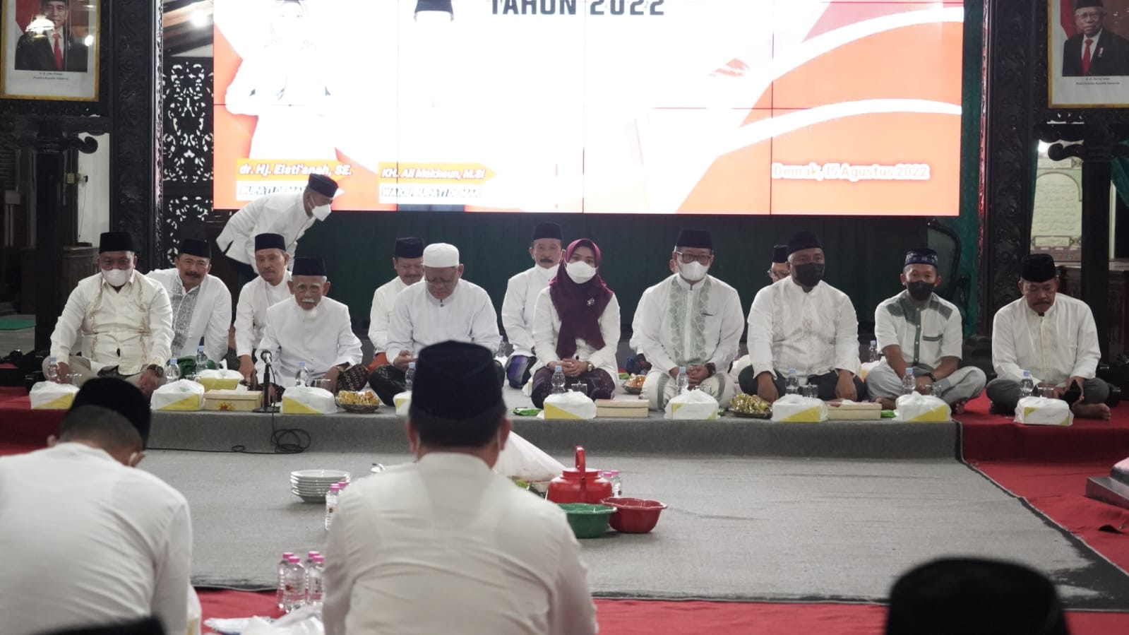 Acara berlangsung di pendopo Satya Praja di hadiri Bupati Eisti’anah, Wakil Bupati Ali Makhsun, Pj. Sekretaris Daerah Eko Pringgolaksito, para pejabat di jajaran pemkab Demak serta warga masyarakat di lingkungan kantor bupati, Senin (15/8/22).