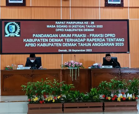 Demak – Ketua DPRD Kabupaten Demak Fahrudin Bisri Slamet (FBS) dalam rapat paripurna Ke 28 Masa Sidang III Tahun 2022, tentang pandangan umum fraksi-fraksi DPRD Kabupaten Demak terhadap Raperda tentang APBD Kabupaten Demak TA 2023 menyampaikan, bahwa Raperda tentang APBD Kabupaten Demak tahun anggaran 2022 telah diserahkan oleh Bupati Demak pada rapat paripurna ke 27 […]
