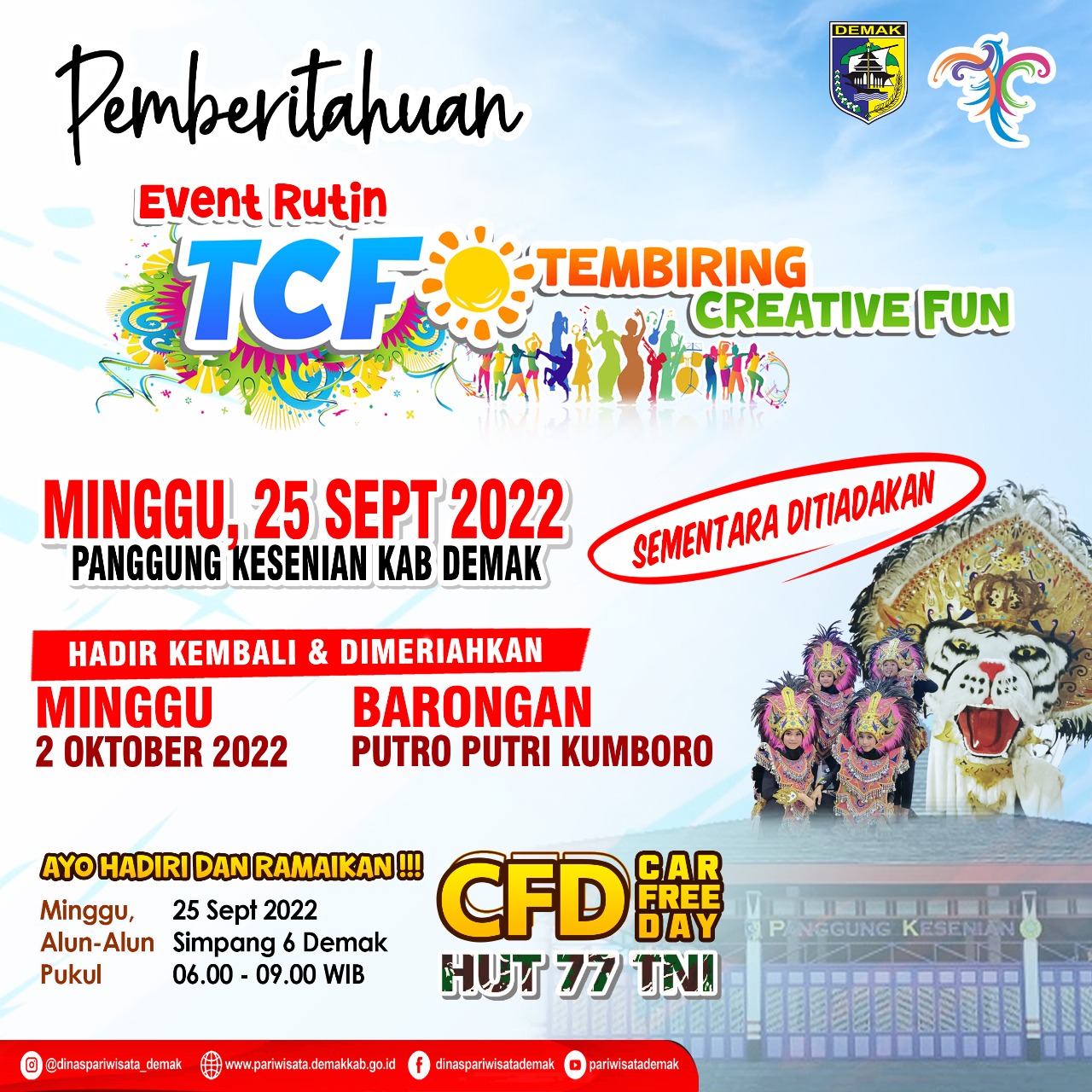 Demak – Event Rutin TCF (Tembiring Creative Fun) pada Minggu ini tanggal 25 September 2022 sementara di liburkan.
