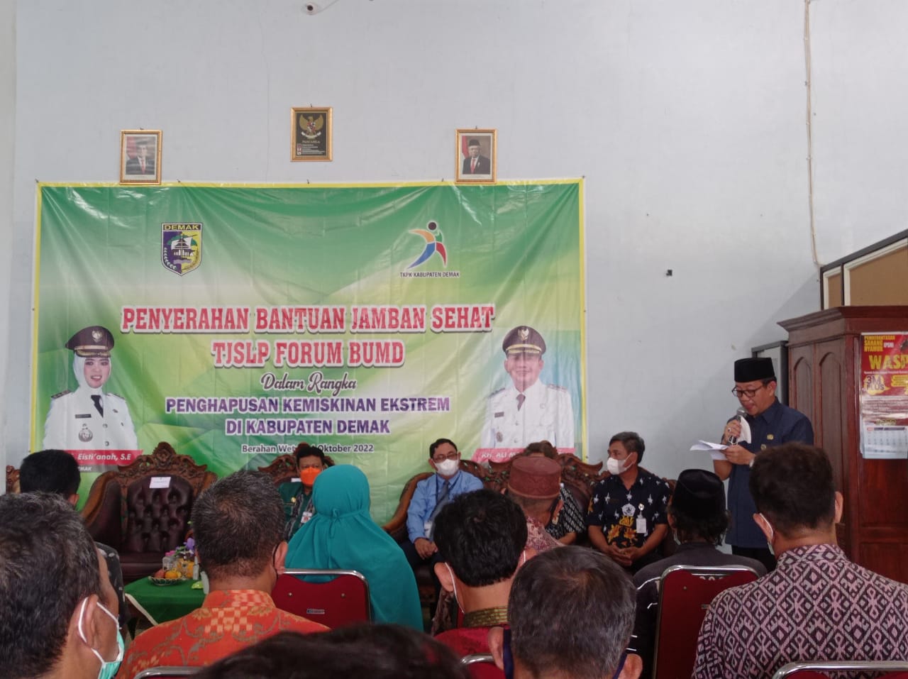 Demak – Pemerintah Kabupaten Demak berkomitmen dalam Penanggulangan Kemiskinan Ekstrem (PKE) tahun 2022, salah satunya dengan memberikan bantuan sosial berupa jamban sehat di lokus prioritas percepatan penghapusan kemiskinan ekstrem.