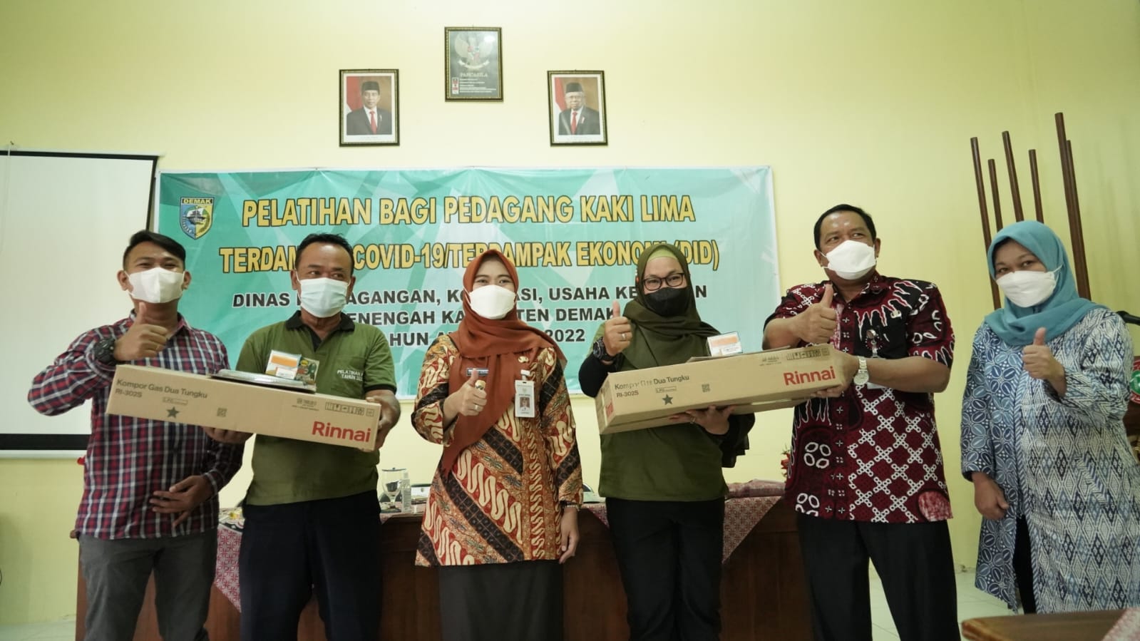 Demak – Pemkab Demak melalui Dinas Perdagangan, Koperasi, Usaha Kecil dan Menengah menggelar Kegiatan Pemberdayaan Kelembagaan Potensi dan Pengembangan Usaha Mikro Melalui Peningkatan Pelatihan PKL terdampak Covid – 19. Bantuan berupa alat produksi bagi para PKL di Demak sebanyak 225 kompor gas dua tungku. Penyerahan Bantuan bertempat di Gedung PGRI Kabupaten Demak, Kamis, (27/10/22).