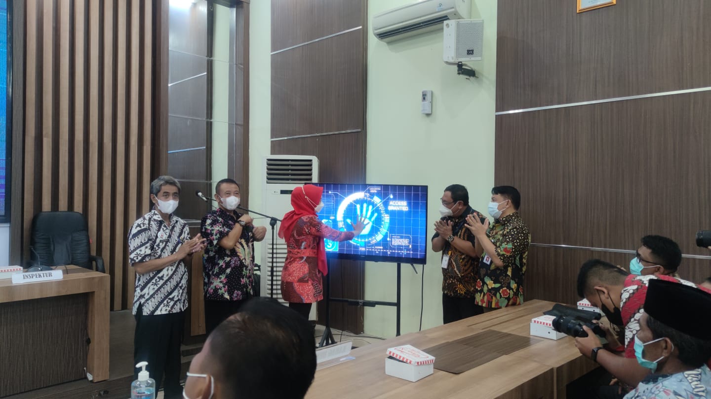 Launching di tandai dengan menekan layar monitor yang di dampingi oleh Pj. Sekda Eko Pringgolaksito, Inspektur Demak Kurniawan Arifendi, Kepala Dinpermades P2KB Taufik Rifa’i, dan Pimpinan Bank Jateng Cabang Demak Adhi Setiawan.