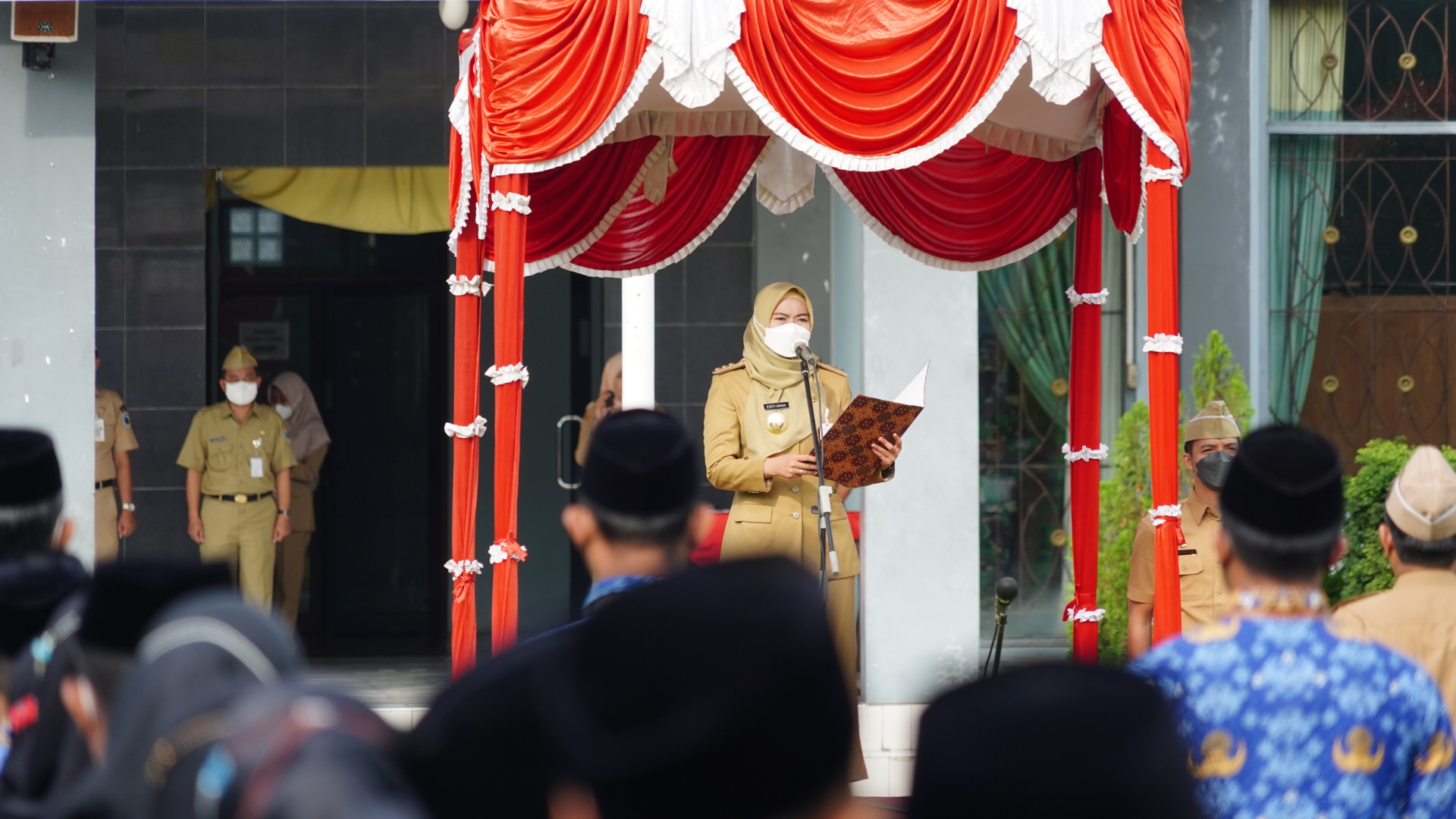 Bertindak selaku insektur upacara (Irup) Bupati Demak Eisti’anah, berlangsung di halaman Sekretariat Daerah, Senin, (19/12/22).