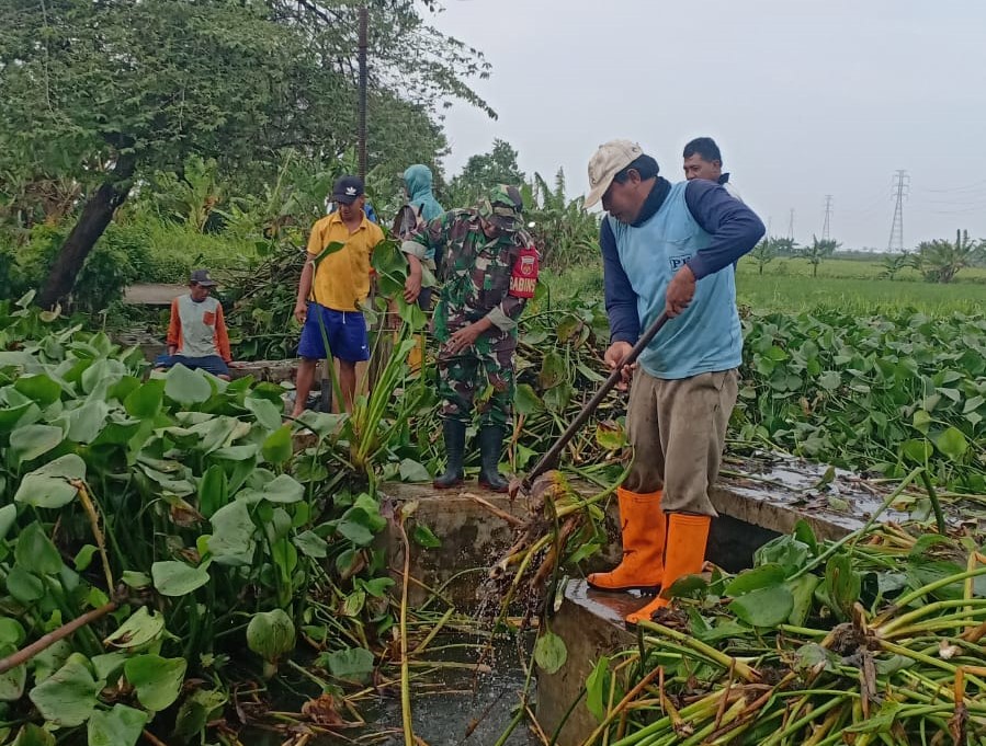 Demak – Puluhan warga di Desa Bonangrejo, Kecamatan Bonang, bersama Babinsa Bonangrejo Koramil 02/Bonang Kodim 0716/Demak, melaksanakan kerja bakti pembersihan tanaman eceng gondok di sungai tuntang yang melintas di Desa Bonangrejo, Kecamatan Bonang, Selasa (3/1/2023).