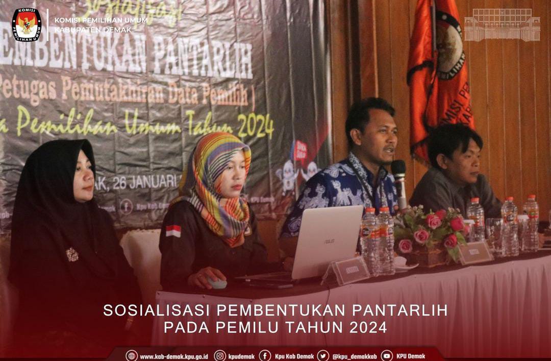 Demak – Dalam rangka mensukseskan Pemilu 2024, Komisi Pemilihan Umum (KPU) Kabupaten Demak menggelar Sosialisasi Pembentukan Petugas Pemutakhiran Data Pemilih (Pantarlih) pada Pemilu Tahun 2024, Kamis (26/01/23) di Reinz Cafe and Resto.