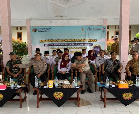 Demak – Bupati Demak Eisti’anah di dampingi unsur Forkopimda dan Forkopimcam Wonosalam menyaksikan pemasangan tanda batas di Desa Kuncir Kecamatan Wonosalam. Dalam acara Gerakan Masyarakat Pemasangan Tanda Batas (Gemapatas) dan Penyerahan Sertifikat Aset Pemerintah Daerah, Jumat (3/2/23). Gerakan Pemasangan Satu Juta Patok dilakukan serentak di 33 Provinsi di Indonesia dengan mengikuti acara secara daring yang […]