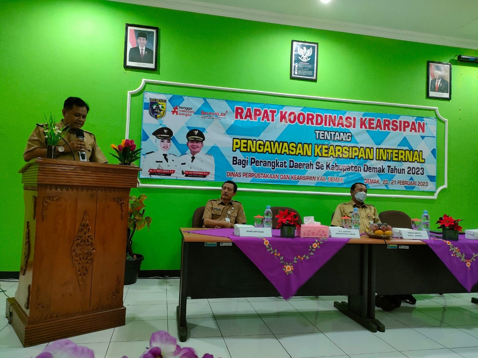 Demak – Dinas Perpustakaan dan Kearsipan Kabupaten Demak gelar rakor kearsipan tentang pengawasan arsip internal bagi perangkat daerah se – Kabupaten Demak bertempat di kantor Dinas setempat, Senin, (20/2/23).