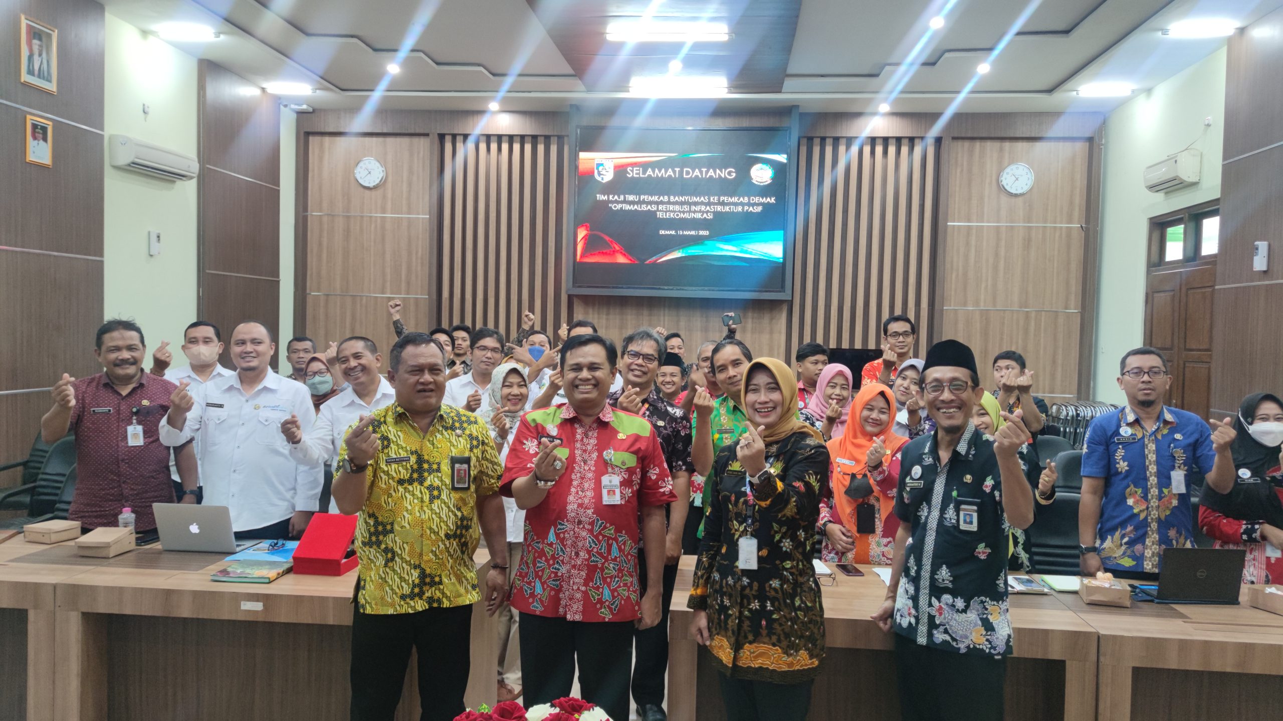 Demak – Pemerintah Kabupaten Demak menerima kunjungan kerja dari Pemerintah Kabupaten Banyumas. Rombongan dipimpin oleh Kepala Dinas Komunikasi dan Informatika Kabupaten Banyumas Yayah Setiyono dan di terima langsung oleh Plt Assisten Administrasi Umum Haris Wahyudi Ridwan bersama Kepala Dinas Komunikasi dan Informatika Demak Endah Cahya Rini, di Gedung Grhadika Bina Praja Kabupaten Demak, Rabu, (15/3/23).