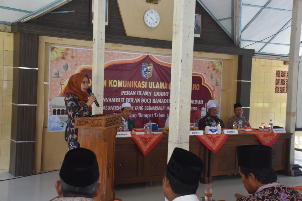 Demak – Bupati Demak Eisti’anah hadir dalam Forum Komunikasi Ulama Umaro (FKUU) Kecamatan Dempet, Rabu, (15/3/23).
