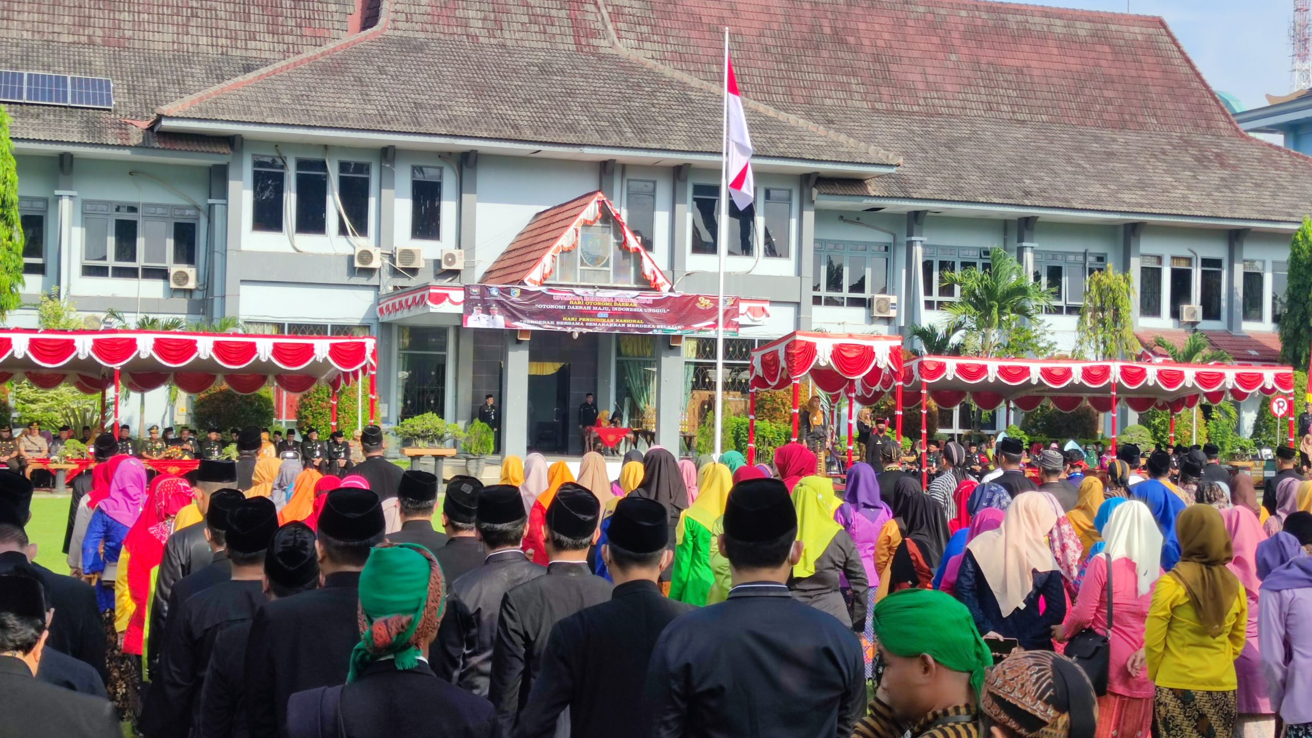 Demak – Pemkab Demak melaksanakan upacara Hari Pendidikan Nasional (HARDIKNAS) bersamaan Hari Otonomi Daerah ke 27 bertempat di Halaman Setda Kabupaten Demak, Selasa, (2/5/23). Upacara dihadiri oleh Persatuan Guru Republik Indonesia (PGRI) , ASN, TNI, POLRI, SATPOL PP.
