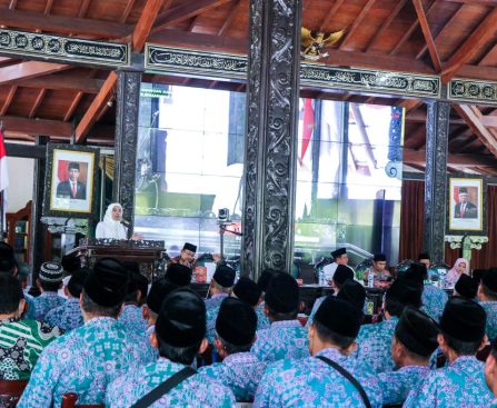 Demak – Bupati Demak Eisti’anah bersama Wakil Bupati Ali Makhsun, Sekda Demak Ahmad Sugiharto, serta Unsur Forkopimda Demak secara bersama memukul kentongan sebagai tanda membuka Festival Olahraga Rekreasi Masyarakat Kabupaten (FORKAB) saat berlangsung upacara pembukaan di Halaman Setda Demak, Jumat (20/05/23). Dalam amanahnya Bupati Eisti’anah menyampaikan dengan adanya FORKAB ini, masyarakat dapat lebih mengenal olahraga […]