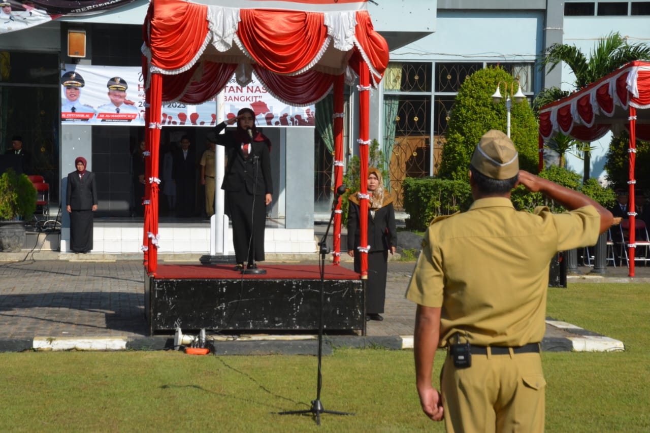 Demak – Bupati Demak Eisti’anah bertindak selaku Irup pada peringatan Hari Kebangkitan Nasional (Harkitnas) ke-115 yang berlangsung di Halaman Sekretariat Daerah, Senin (22/05/23). Adapun peserta upacara meliputi TNI, Polri dan PNS.