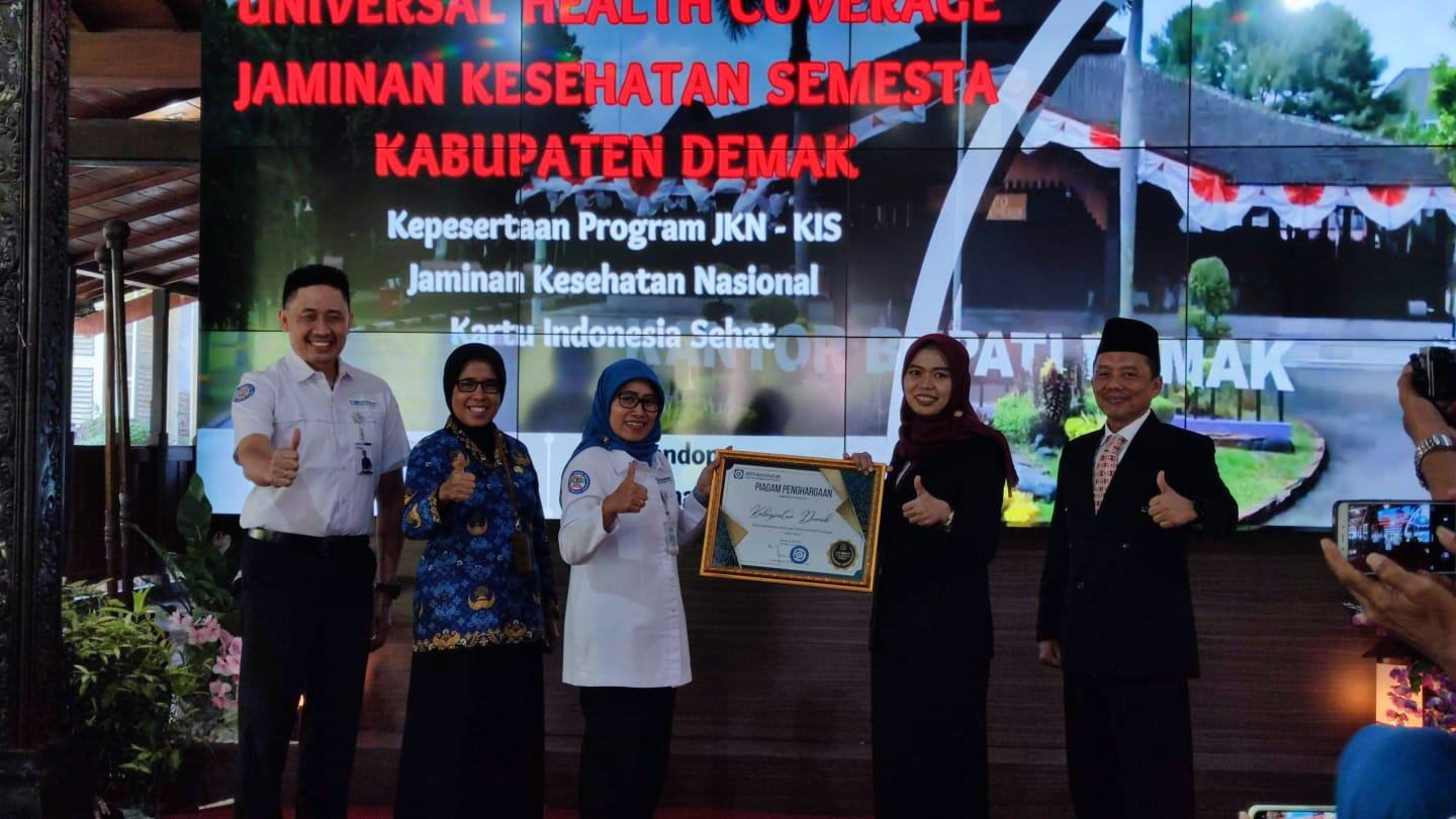 Demak – Pemerintah Kabupaten Demak berhasil membuktikan komitmennya dalam memberikan perlindungan jaminan kesehatan bagi penduduk dengan mencapai cakupan semesta jaminan kesehatan atau Universal Health Coverage (UHC).