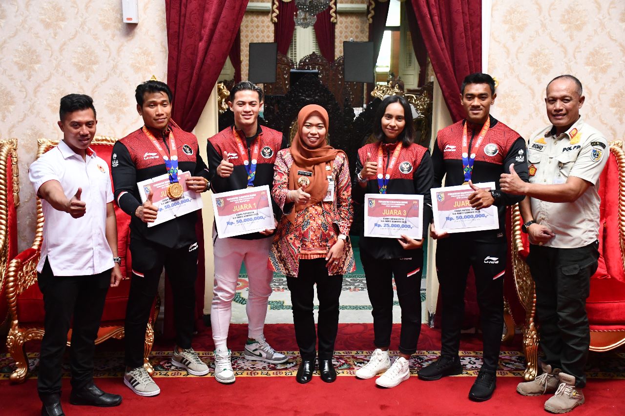Penghargaan berupa uang tunai sebesar Rp 50 Juta diberikan kepada masing-masing atlet yang berhasil meraih mendali emas, sementara uang tunai sebesar Rp 25 juta diberikan kepada atlet yang berhasil meraih mendali perunggu, penyerahan didampingi Kadinpora Moh Ridhodhin serta Ketua Umum KONI rudi.