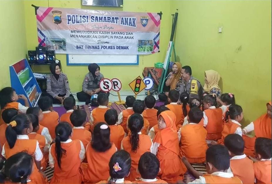 Demak – Satuan Binmas Polres Demak lakukan giat Polisi Sahabat Anak (PSA), berikan pengetahuan profesi dan lingkup kerja Polri kepada siswa siswi TK Kuncup Mekar Desa Kuncir Kecamatan Wonosalam Kab. Demak, Selasa, (6/6/23).