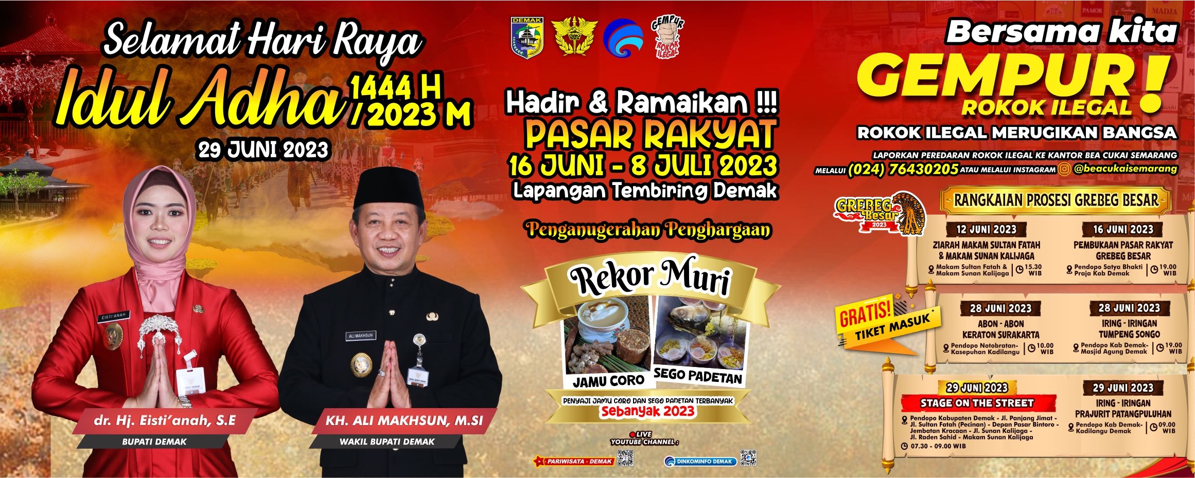 Sebagai informasi, adapun rangkaian prosesi Grebeg Besar meliputi, tanggal 12 Juni 2023 Ziarah Makam Sultan Fatah dan Makam Sunan Kalijaga, 16 Juni 2023 Pembukaan Pasar Rakyat Grebeg Besar, 28 Juni 2023 pukul 10.00 WIB Abon-Abon Keraton Surakarta.