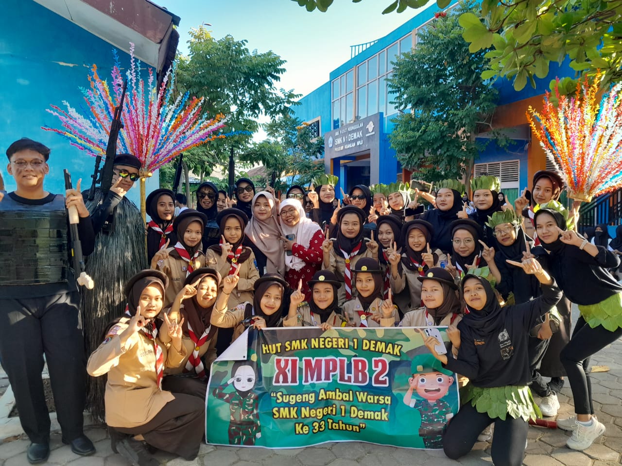 Demak – Ribuan siswa siswi SMK Negeri 1 Demak dengan beragam kreatifitas dari masing masing kelas mengikuti karnaval yang diselenggarakan oleh pihak sekolah. Karnaval tersebut menarik perhatian warga di pagi hari yang dilewati barisan peserta. Mereka berjalan menyusuri jalan Sultan Hadi Wijaya, jalan Teuku Umar ,Puspita Raya dan Perum Wiku 2 diiringi dentuman musik dari sound di atas gerobak dorong.