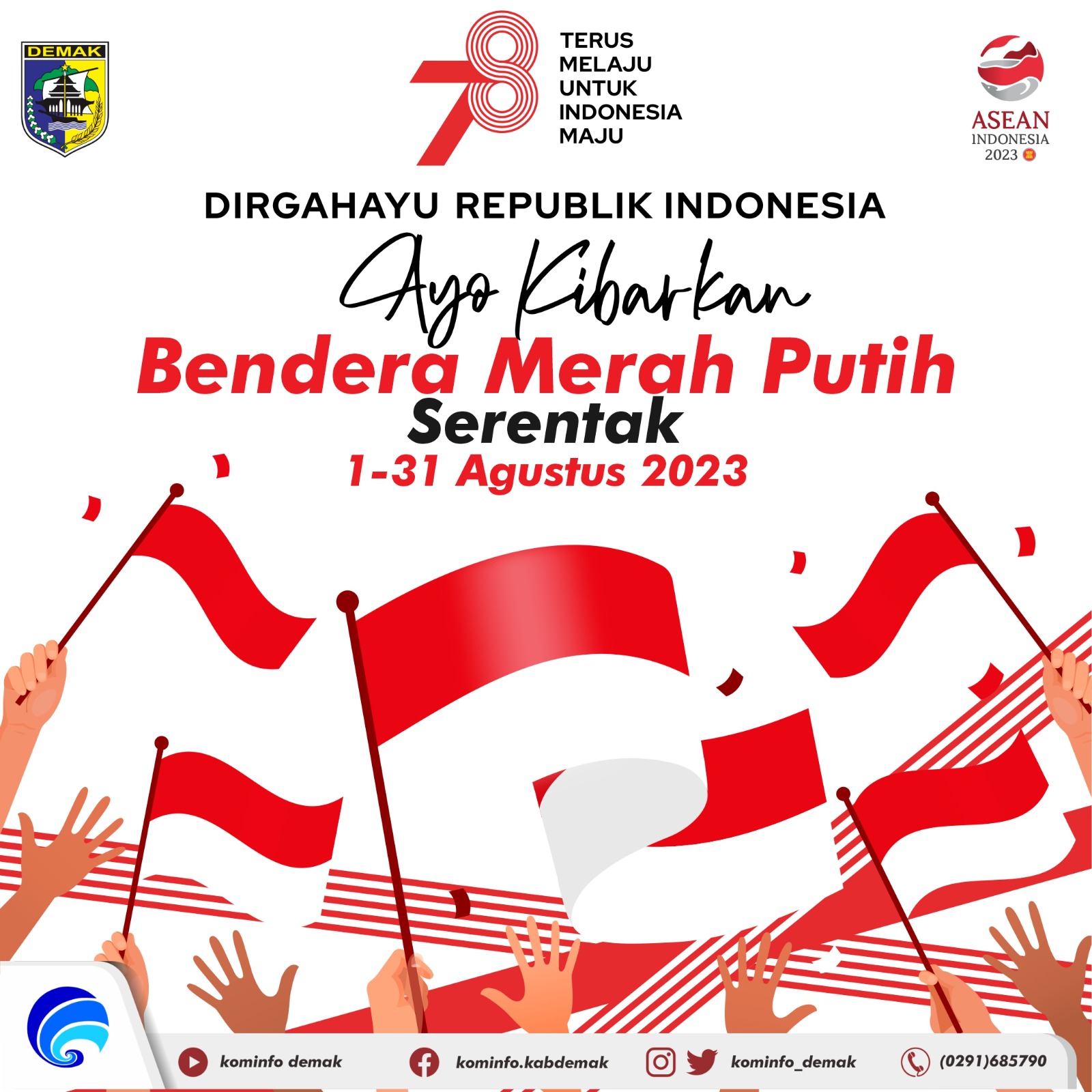 Demak – Dalam rangka memperingati HUT ke-78 Kemerdekaan Republik Indonesia, Bupati Demak Eisti’anah mengajak kepada seluruh masyarakat khususnya diwilayah Kabupaten Demak dengan serentak mengibarkan bendera merah putih di lingkungan masing-masing mulai tanggal 1 Agusutus sampai dengan 31 Agustus 2023 yang merupakan langkah kecil dalam menghormati perjuangan para leluhur bangsa.