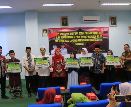 Demak – Sebanyak 45 Hafidz Hafidzoh 30 Juz dari 12 Pondok Pesantren di Kabupaten Demak menerima bantuan sosial dari Pemerintah Kabupaten Demak. Bantuan dengan besaran 2 juta diserahkan secara simbolis oleh Bupati Demak Eisti’anah, Rabu (09/08/23) di Ruang Ballroom Wabup Lantai 1. Bupati Eisti’anah menyampaikan, penyerahan bantuan program beasiswa bagi Hafidz Hafidzoh ini merupakan implementasi […]