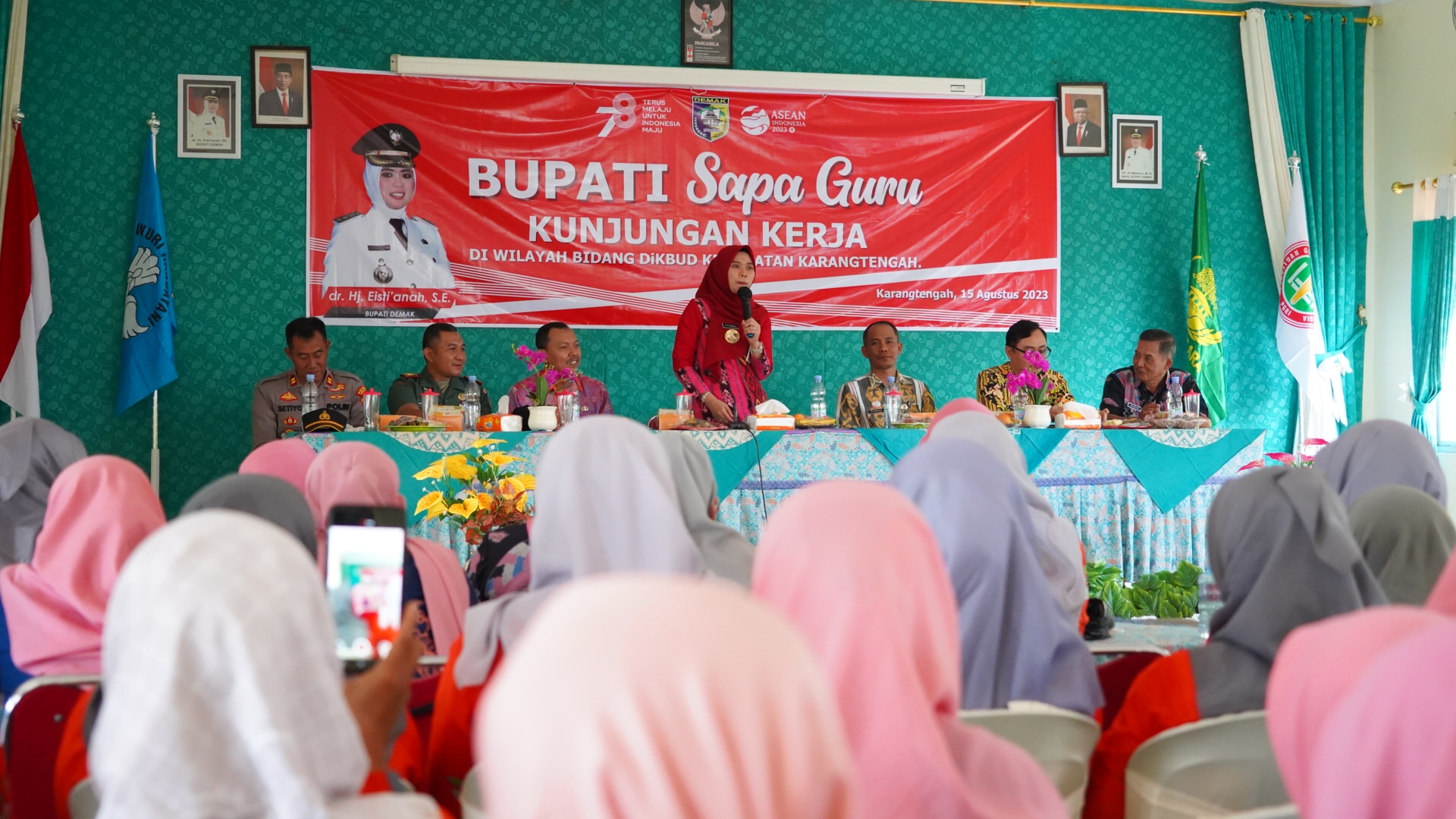 Hal tersebut disampaikan Bupati Demak Eisti’anah saat mengunjungi Koordinator Wilayah Bidang Pendidikan dan Kebudayaan Kecamatan Karangtengah (Korwil Biddikbud), dalam program acara ‘Bupati Demak Sapa Guru’. Selasa, (15/8/23).
