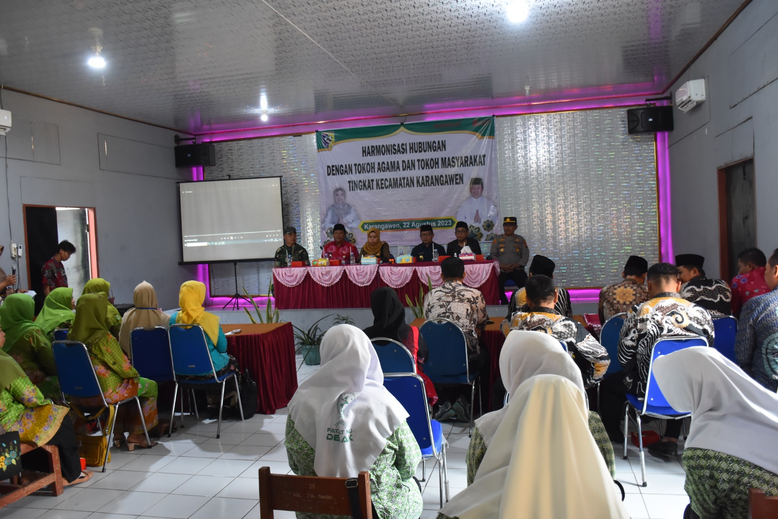 Demak – Bupati Demak Eisti’anah bersama Wakil Bupati Demak Ali Makhsun beserta jajaran Forkopimcam Karangawen menghadiri pertemuan sinergitas tokoh agama dan tokoh masyarakat di gedung pertemuan kecamatan Karangawen, Selasa (23/8/23).