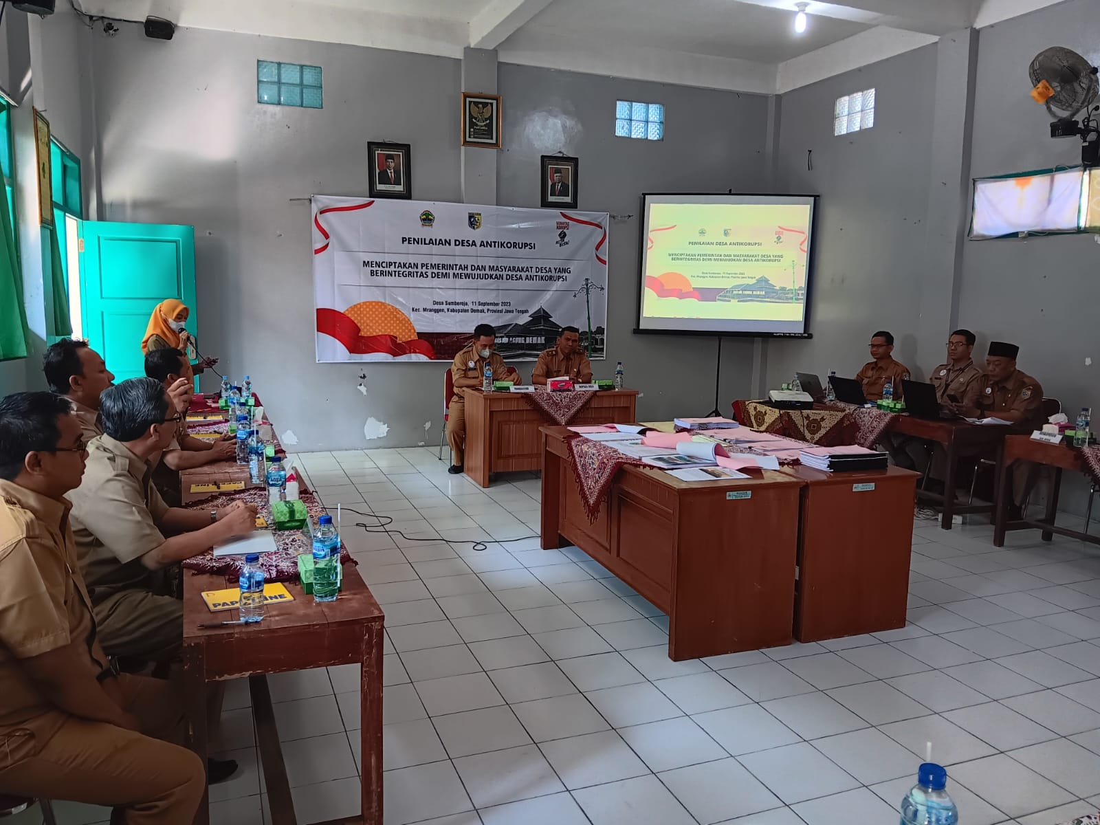 Kegiatan tersebut di hadiri oleh tim penilai yang terdiri dari Inspektorat Provinsi Jateng, Dispermasdukcapil Prov Jateng, Dinas Komunikasi dan Informasi Provinsi Jateng, Inspektorat Kabupaten Demak, Dinas Pemberdayaan Masyarakat Desa Kabupaten Demak dan Dinas Komunikasi dan Informatika Kabupaten Demak.