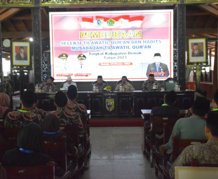 Demak – Wakil Bupati Ali Makhsun membuka kegiatan Seleksi Tilawatil Qur’an dan Hadist (STQH) dan Musabaqoh Tilawatil Qur’an (MTQ) tingkat Kabupaten Demak tahun 2023 bertempat di Pendopo Satya Bhakti Praja, Kamis (26/10/23). Menurut Wabup Ali kompetisi ini dapat semakin mendekatkan diri kepada nilai-nilai keagamaan, persaudaraan, dan keteladanan. “Mari tunjukkan sportivitas, rasa persaudaraan, dan keikhlasan dalam […]