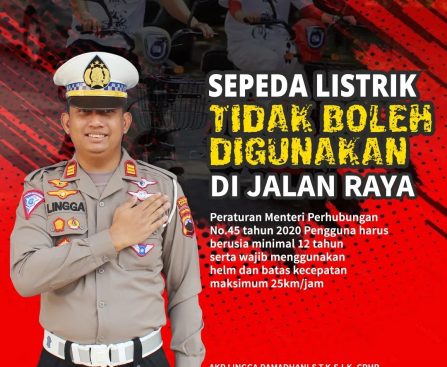 Demak – Satlantas Polres Demak AKP Lingga Ramadhani, S.T.K,S.I.K, CPHR menghimbau warga masyarakat kabupaten Demak agar tidak mengendarai sepeda listrik di jalan raya. “Sepeda listrik tidak boleh digunakan di jalan raya,” tulis akun Satlantas Polres Demak. Senin (6/11/1023). Akun instagram tersebut juga menyampaikan “Peraturan Mentri Perbuhungan No.45 tahun 2020 pengguna harus berusia minal 12 tahun […]