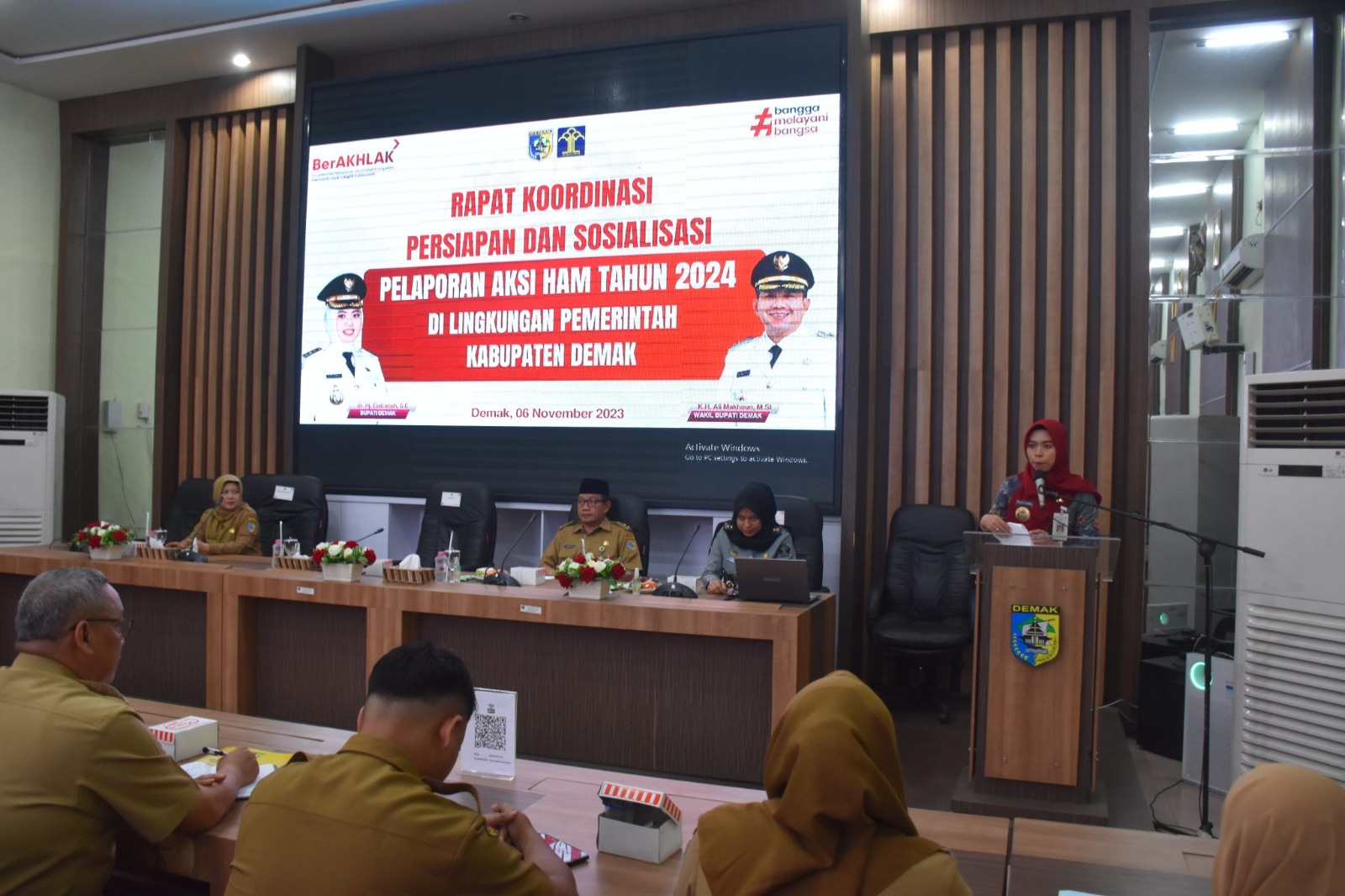 Demak – Pemerintah Kabupaten Demak menggelar Rapat Koordinasi Persiapan dan Sosialisasi Pelaporan Aksi HAM Tahun 2024. Rakor yang di buka Bupati Demak Eisti’anah di selenggarakan di Gedung Grhadika Bina Praja, Senin (06/11/23).