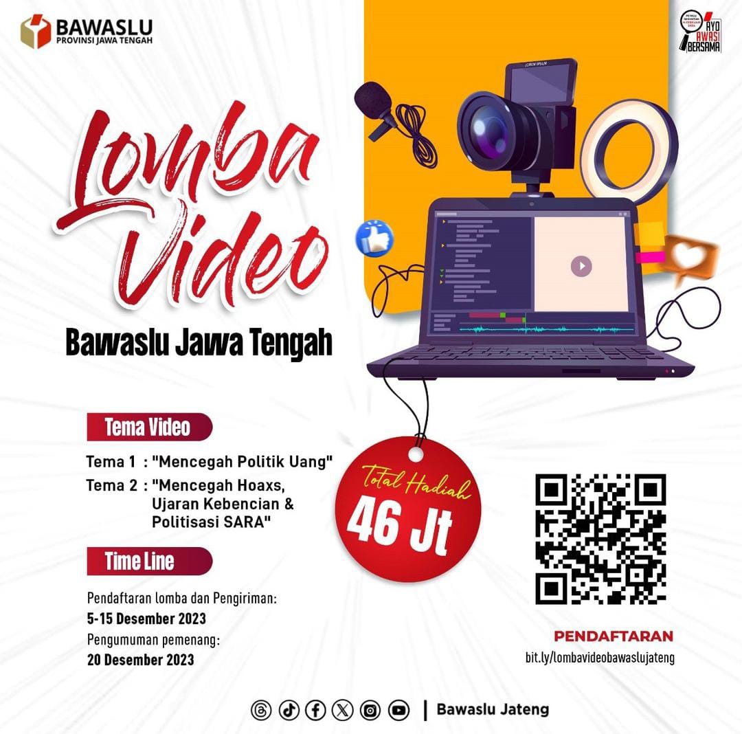 Demak – Badan Pengawas Pemilihan Umum (Bawaslu) Provinsi Jawa Tengah menggelar lomba video dengan total hadiah 46 juta. Pengumuman tersebut di repost Bawaslu Demak melalui akun instagram resminya @bawasludemak, Rabu (16/12).