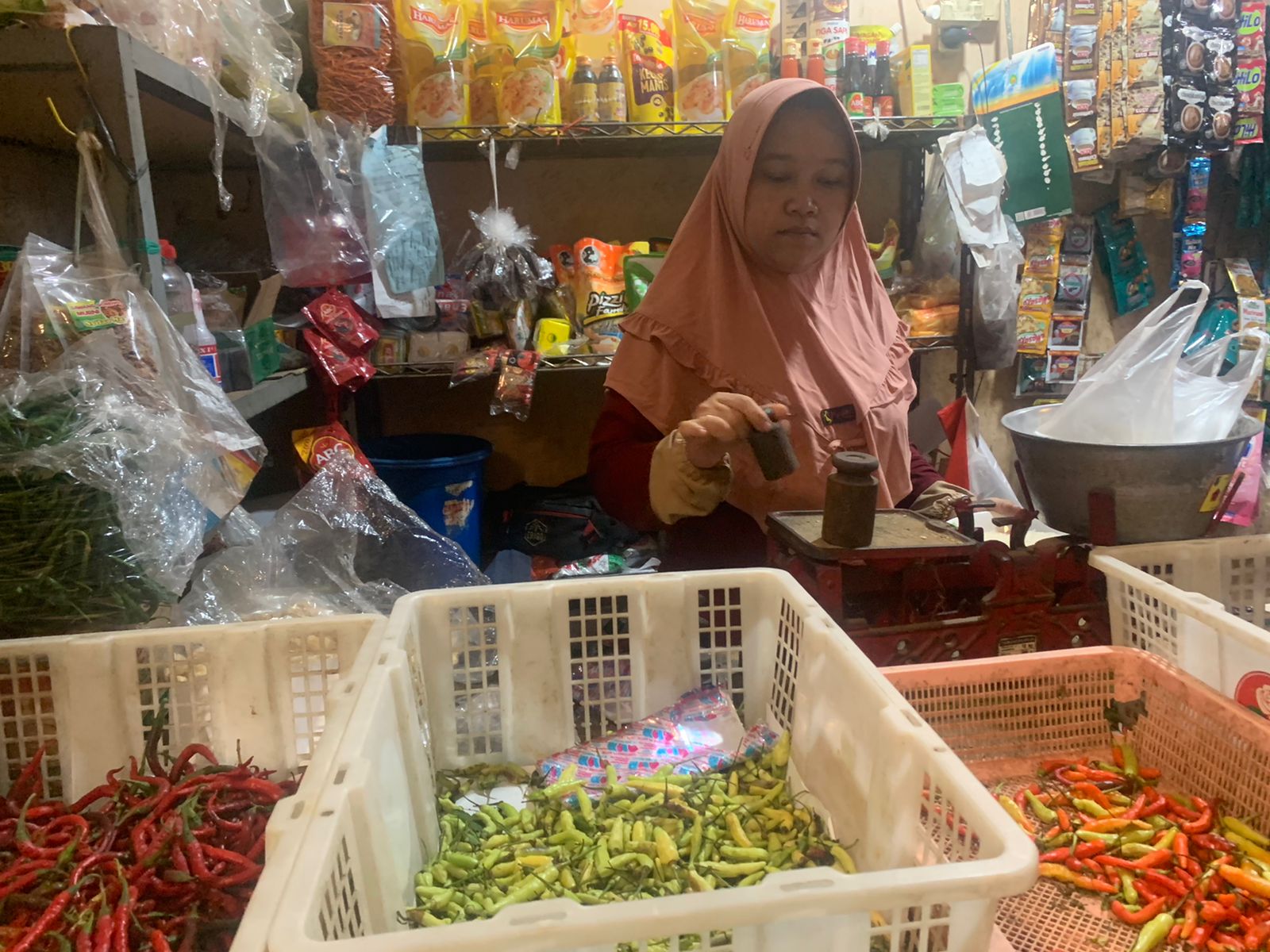 cabai setan yang semula 90 ribu perkilogram turun menjadi 70 ribu perkilogram, cabai merah semula 80 ribu perkilogram menjadi Rp 50 ribu perkilogram, sedangkan rawit semula 60 ribu perkilogram menjadi 35 ribu per kilogram.