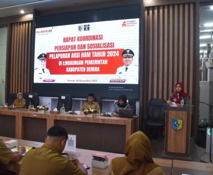 Demak – Bupati Demak Eisti’anah salurkan bantuan kepada warga Desa Sidorejo Kecamatan Karangawen yang terkena dampak bencana banjir akibat dua tanggul jebol dan luapan banjir dari Grobogan. Bantuan diserahkan di Posko Darurat Bencana Desa Sidorejo, Selasa (07/02/24).