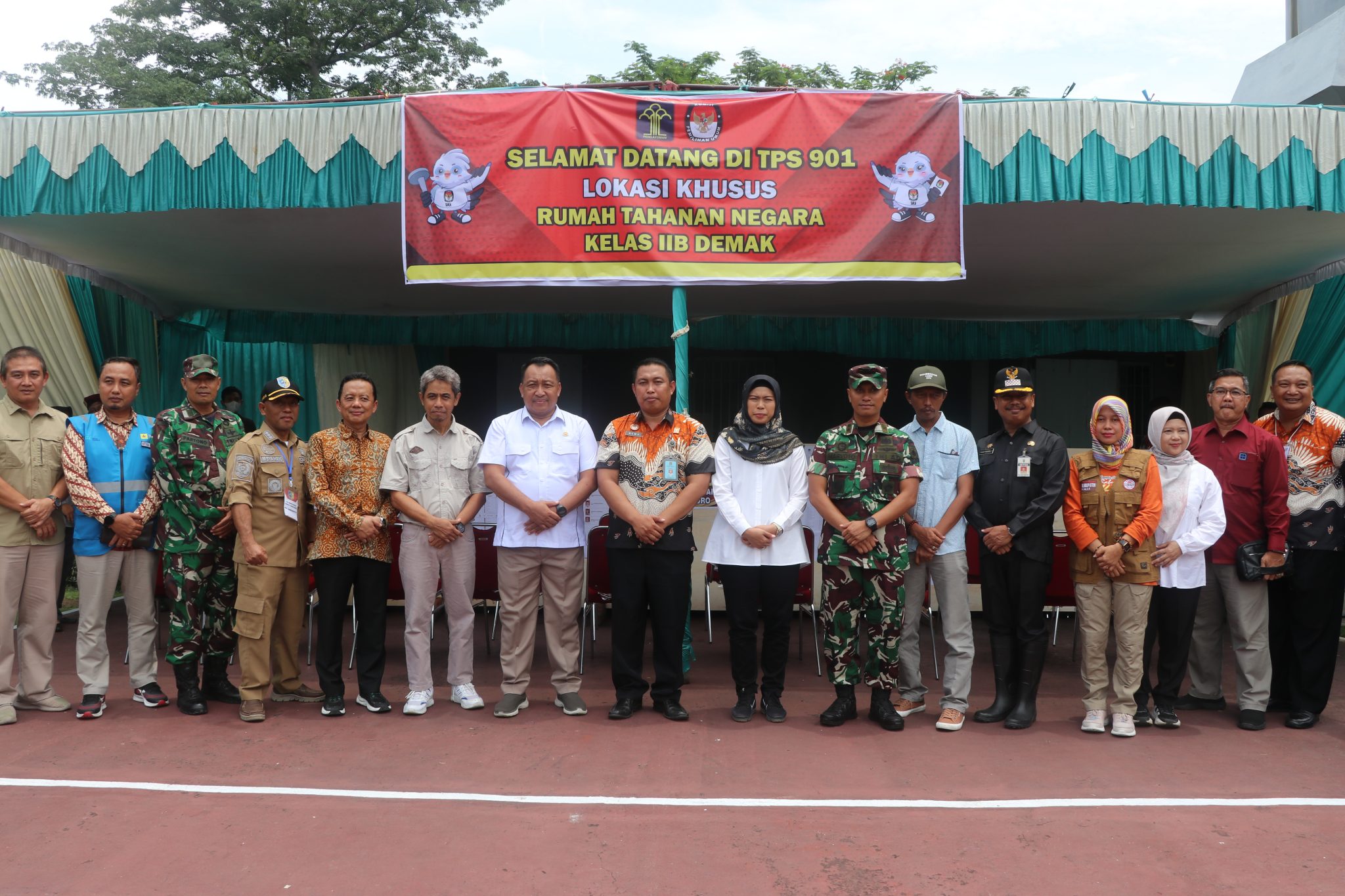 Rombongan yang terdiri dari pejabat terkemuka di Kabupaten Demak ini melakukan monitoring di TPS Rutan Demak, TPS Desa Sari di Kecamatan Gajah, serta mengunjungi pengungsi banjir di SD Negeri Sari.